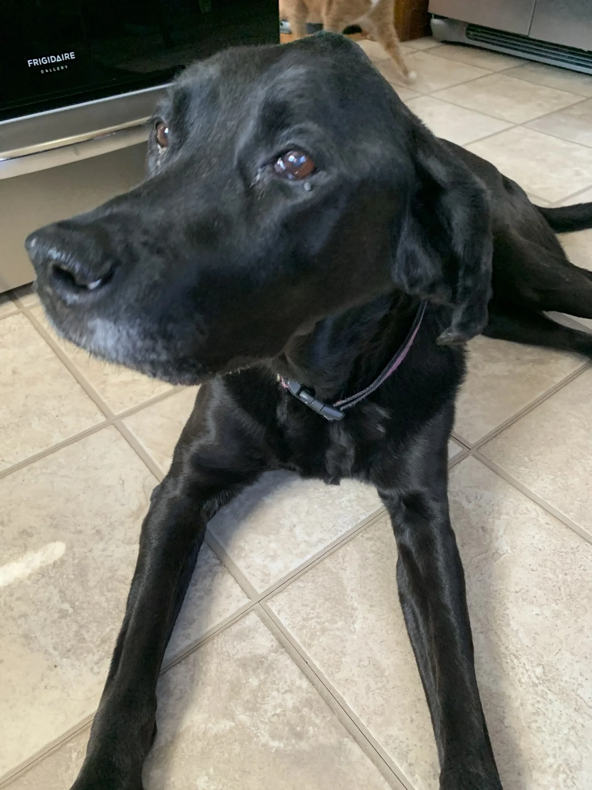 Til å være en labrador var det én ting hun ikke likte: vann og regn. Hun ville helst aldri bli våt på potene. Den aller favorittpersonen hennes var pappa i huset.